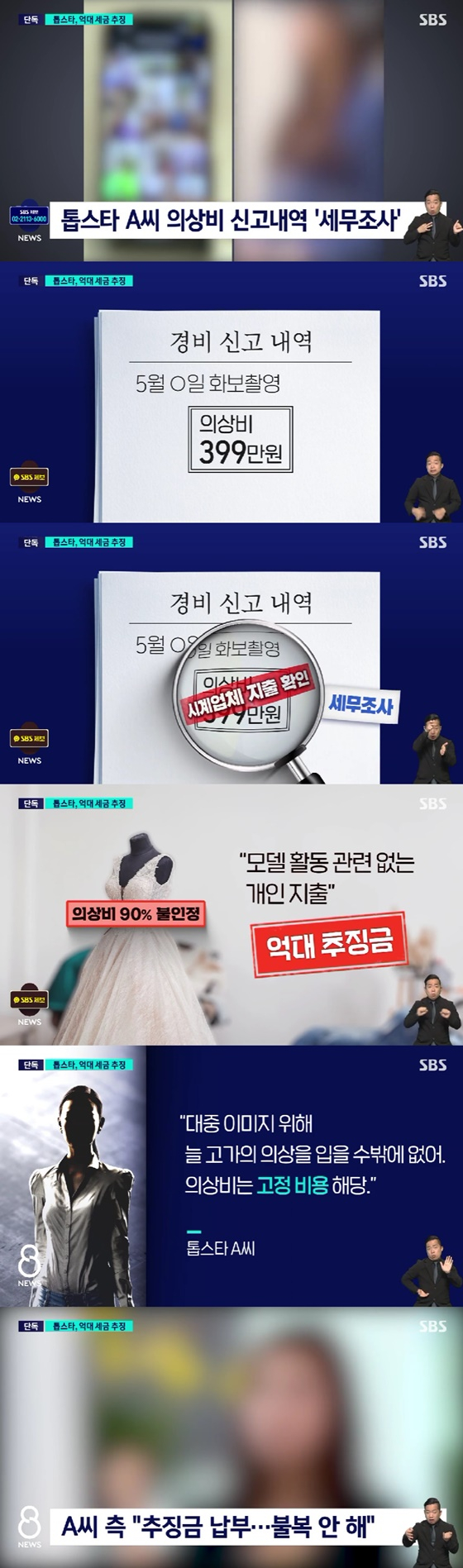 이에 따르면 A씨는 고가 브랜드 행사에서 단골인 연예인이다. 국세청은 A씨가 신고한 의상 비용의 90%가 넘는 약 3억원을 모델 등 연예 활동과는 상관없는 개인적인 지출이라고 판단하고 세금을 추징했다.