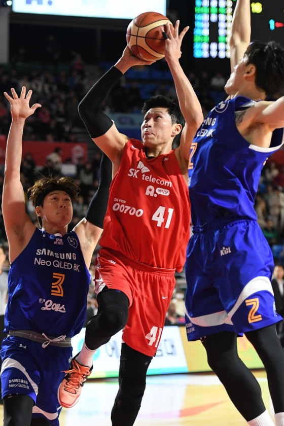 하지만 삼성도 쉽게 역전을 허용하지 않았다. 곧바로 최성욱이 3점포를 터트리며 주먹을 불끈 쥐었다. 그러자 SK는 허일영의 3점으로 맞붙을 놓으며 다시 동점에 성공했다. 이어 2쿼터 종료 직전 김성현의 돌파에 이은 슛이 림을 가르며 역전에 성공했다. SK가 45-43으로 근소하게 앞선 채 전반을 끝냈다.