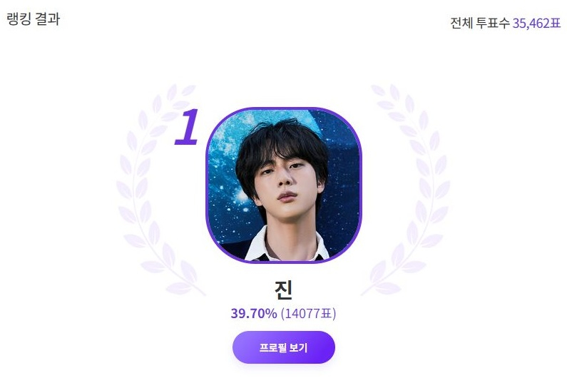 진은 지난해 12월에 입대해 현역 육군 조교로 군복무 중임에도 수많은 투표에서 끊임없이 1위를 차지하며 뜨거운 인기와 최고의 영향력을 증명하고 있다.