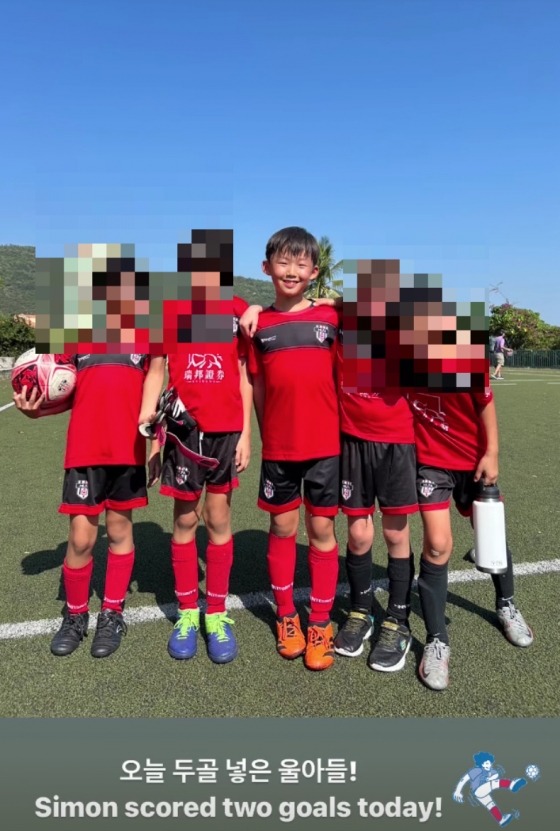 강수정 아들은 최근 태국 치앙마이에서 축구 토너먼트 경기에 나섰다. 강수정은 "오늘 2골 넣은 울 아들"이라며 자랑에 나섰다.