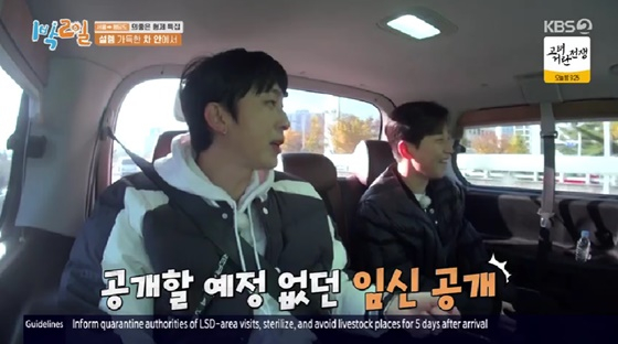 래퍼 슬리피가 딘딘과 '1박 2일'을 위해 아내의 임신 사실을 밝혔다.