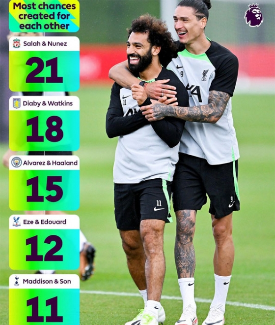통계가 이를 보여주고 있다. 이번 시즌 리그에서 누녜스와 살라는 지금까지 5번의 도움을 기록했다. 이는 프리미어리그에서 2위인 부카요 사카와 트로사르가 기록하고 있는 3개보다 2개가 더 많은 기록이다.