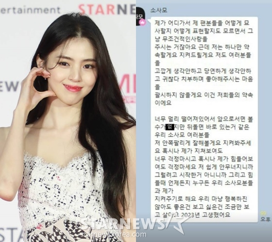 한소희는 끝으로 "그리고 힘들 때 언제든지 누구든 우리 소사모 분들과 제가 지켜주기로 해요. 우리 마냥 행복하진 않아도 좋은 건 보고 싫은 건 조금만 보고 살아요. 2023년 고생했어요"라고 덧붙이며 팬들에게 연말 인사도 전했다.