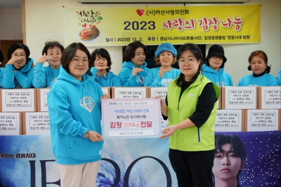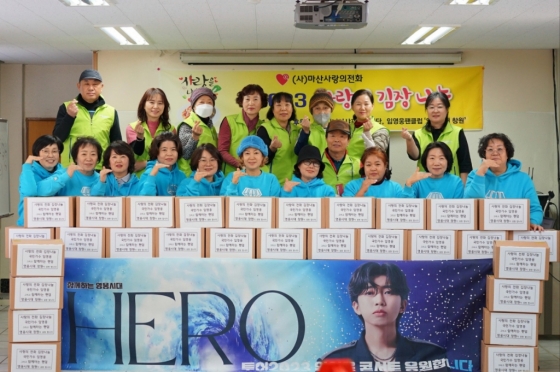 임영웅 팬클럽 '영웅시대 창원'은 창원시 마산 사랑의 전화에 200만 원 상당 김장김치 300kg을 직접 담가 나눔했다.
