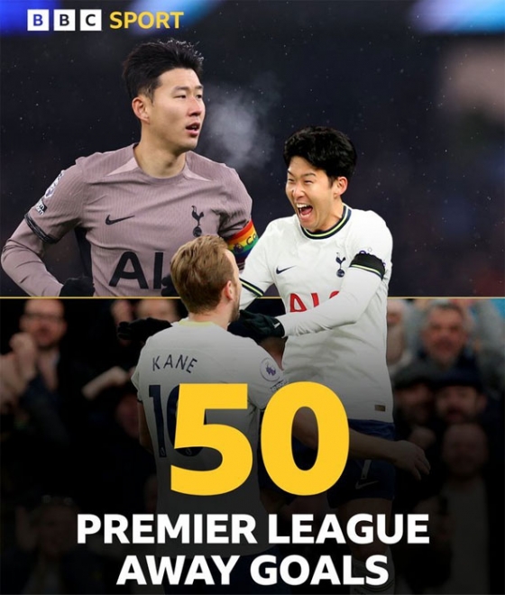 영국 매체 ‘BBC’는 4일(한국 시간) “토트넘 역사상 프리미어리그 원정 50골 이상을 득점한 단 2명의 선수이며 그 선수는 손흥민과 케인이다”라고 보도했다.