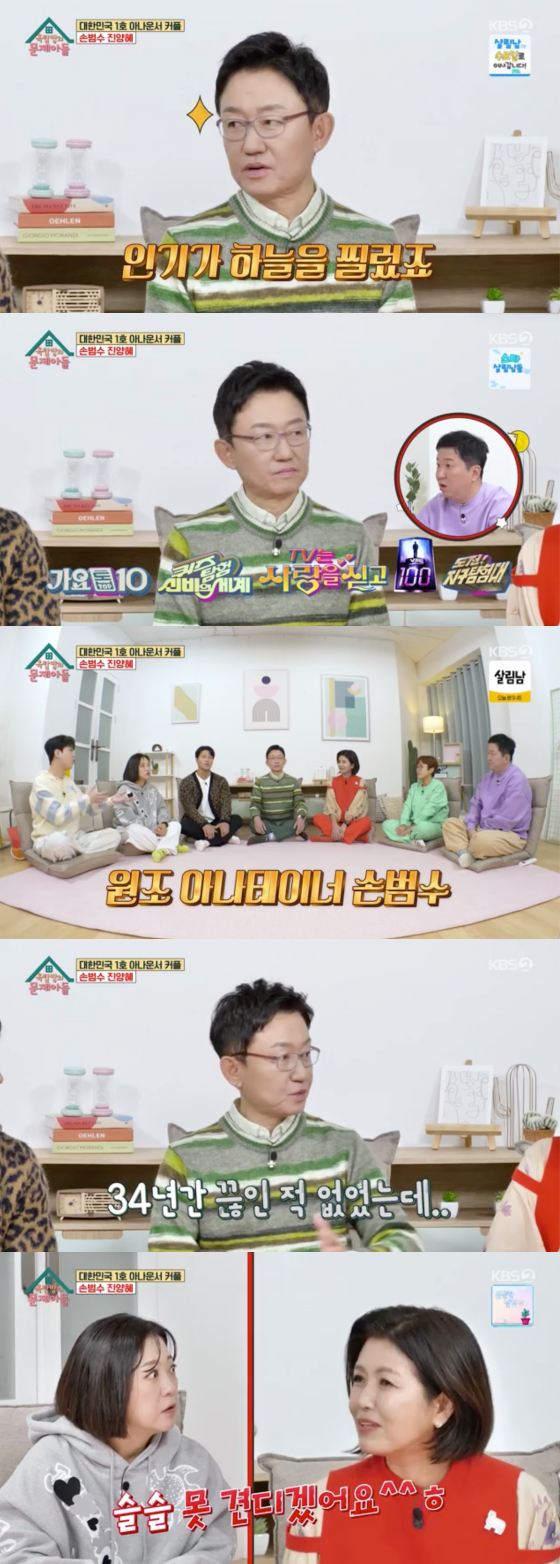 6일 방송된 KBS 2TV '옥탑방의 문제아들'에는 '대한민국 아나운서 1호 부부' 손범수, 진양혜가 게스트로 출연했다.