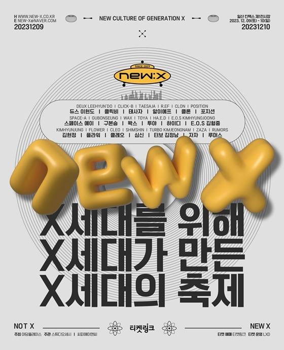 주관사 스튜디오세시에 따르면 '뉴엑스 뮤직 페스티벌'이 오는 12월 9일과 10일 일산 킨텍스 제1전시장 2홀에서 개최되는 가운데, X세대들의 새로운 놀이터가 탄생할 것으로 기대되고 있다.
