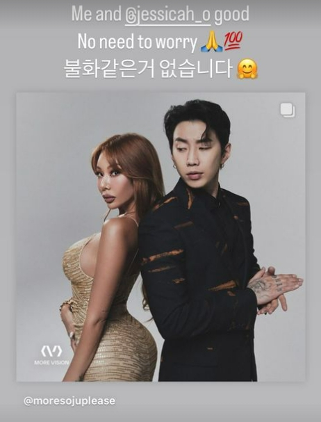 그러나 이 역시 사실이 아니었다. 박재범은 7일 개인 SNS에 제시와 함께 찍은 셀카를 게재, "나와 제시는 사이가 좋다. 걱정 안 하셔도 된다. 불화 같은 거 없습니다"라고 해명했다.