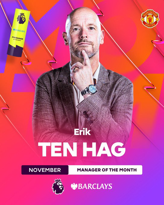 잉글랜드 프리미어리그(EPL) 사무국은 8일(한국시간) "해리 매과이어(30)가 이달의 선수상을 받았다"라며 "에릭 텐 하흐(53) 맨유 감독은 11월의 감독상을 받았다. 맨유는 11월에 실점 없이 세 경기를 모두 이긴 유일한 팀"이라고 발표했다.