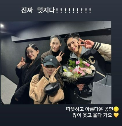 9일 수지는 개인 SNS에 "진짜 멋지다. 따뜻하고 아름다운 공연. 많이 웃고 울다 가요"라며 박보검과 함께 찍은 셀카 한 장을 게재했다.