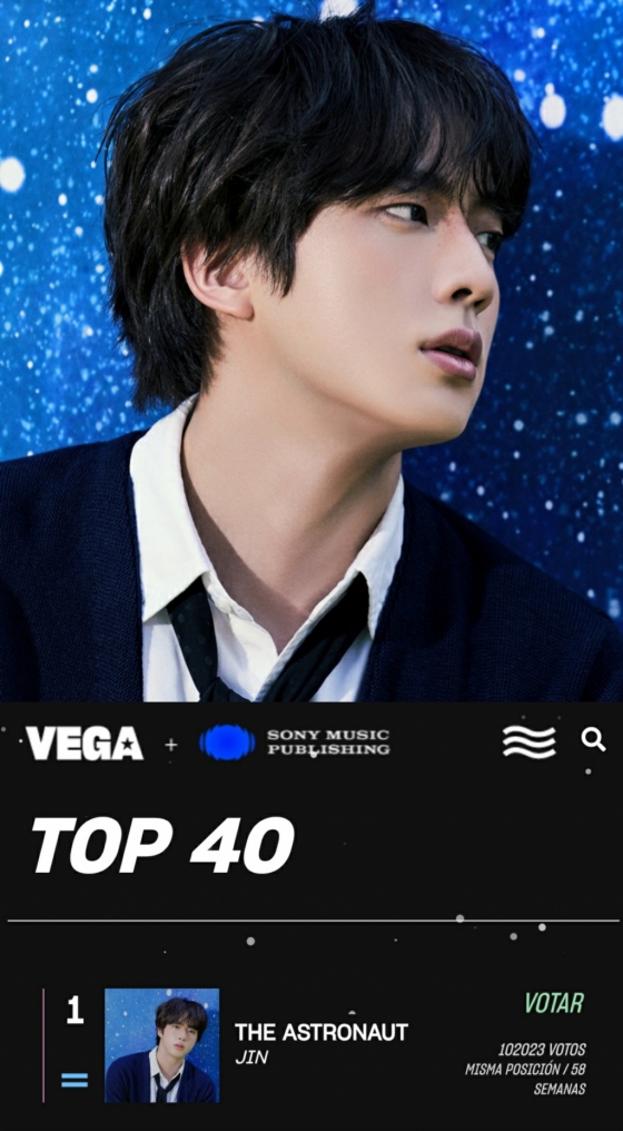진의 첫 솔로 싱글 '디 애스트로넛'은 최근 아르헨티나 '베가 라디오(Vega Radio)'에서 진행한 'KPOP TOP40 랭킹'에서 10만표 이상의 압도적인 득표수로 58주간 1위를 차지하며 독보적인 대기록을 이어가고 있다.