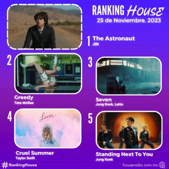 '디 애스트로넛'은 멕시코 라디오 채널 '하우스 라디오(House Radio)'에서 진행하는 'Rankig House TOP30'에서도 11월 25일 주간 1위에 오르며 총 16번째 1위를 기록해 '라디오 킹' 면모를 빛냈다.