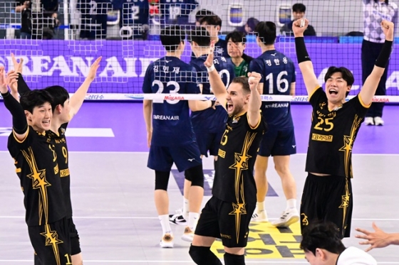 6차례 듀스 공방 끝 웃은 건 KB였다. 임동혁이 듀스에서만 4득점하며 힘을 냈지만 KB는 비예나의 맹공 속 30-29에서 홍상혁의 퀵오픈으로 승부를 원점으로 돌렸다.