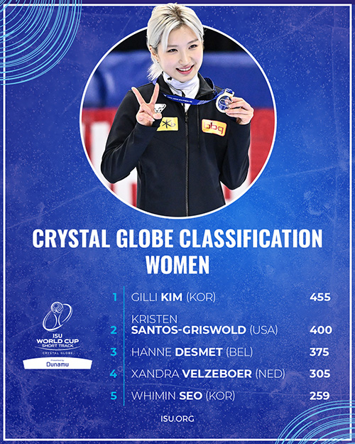 한국은 이번 대회에서 다소 아쉬움을 남겼다. 금메달도 나왔다. 김길리와 김건우(스포츠토토)가 9일 남녀 1500m에서 나란히 금메달을 차지하며 웃었다. 둘은 모두 금메달을 목에 걸며 월드컵 랭킹 1위를 달렸다.