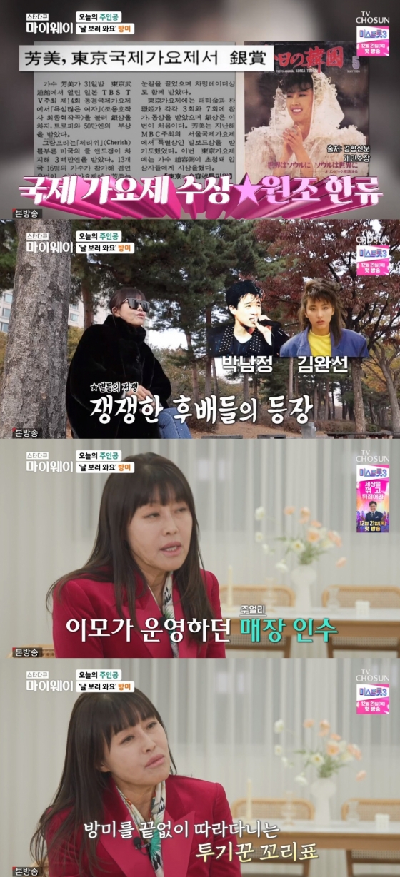 10일 오후 10시 40분 방송되는 TV CHOSUN '스타다큐 마이웨이'에서는 1980년대 대표 디바이자 원조 한류 스타 가수 방미의 인생 스토리가 공개됐다.