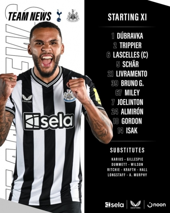 뉴캐슬은 4-3-3 포메이션으로 대응했다. 쓰리톱에 앤서니 고든-알렉산더 이삭-미겔 알미론이 섰다. 중원은 조엘린톤-브루노 기마랑이스-루이스 마일리로 구성됐다. 수비는 티노 리브라멘토-파비안 셰어-자말 라셀러스-키어런 트리피어가 호흡을 맞췄다. 골키퍼는 마르틴 두브라브카였다.