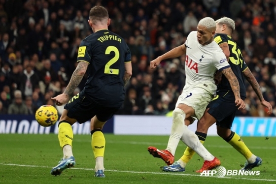 토트넘이 경기 첫 슈팅을 터트렸다. 전반 5분 클루셉스키가 골문으로 쇄도하는 히샬리송에게 전진 패스를 찔러줬다. 히샬리송이 볼을 잡아 수비수를 앞에두고 왼발로 슈팅했지만 골대 위로 높이 떴다.