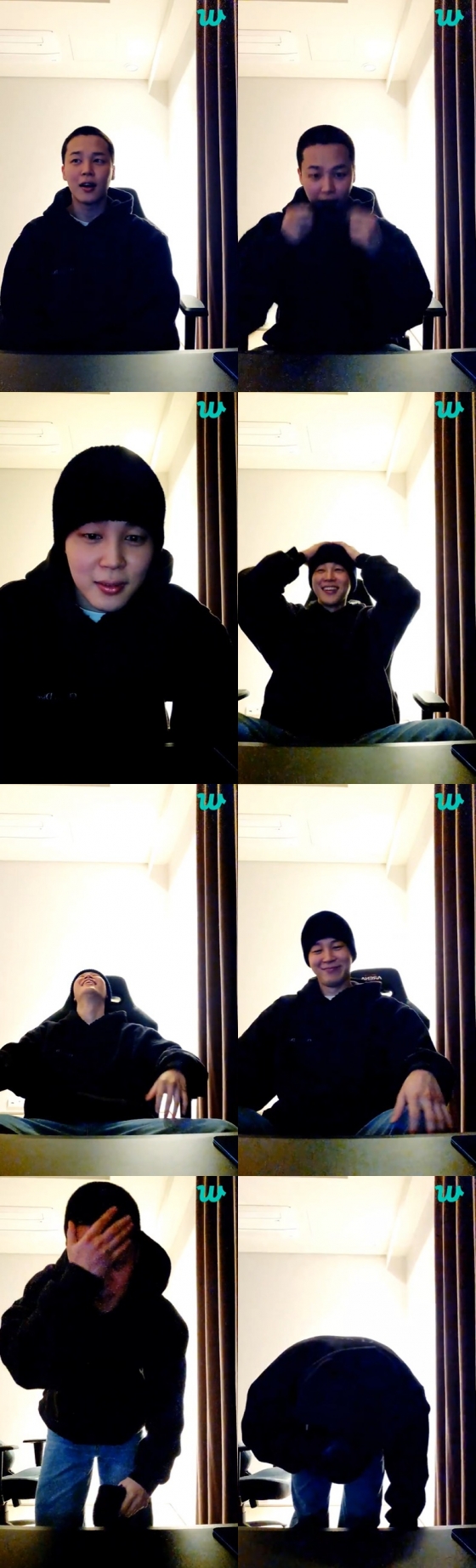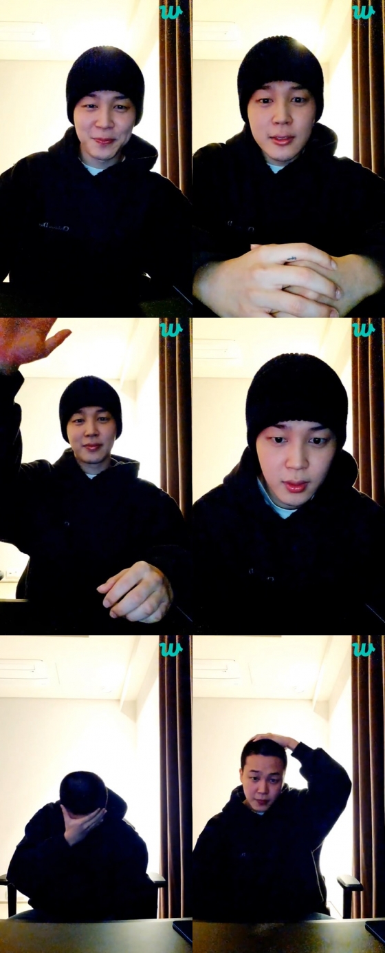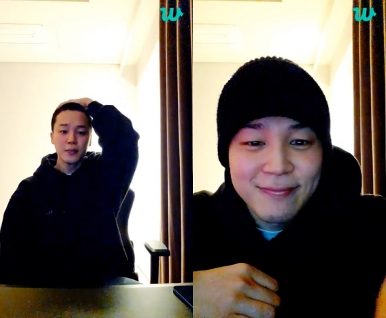 지민은 11일 '다녀오겠습니다'라는 제목으로 라이브 방송을 켜고 팬들과 만났다.