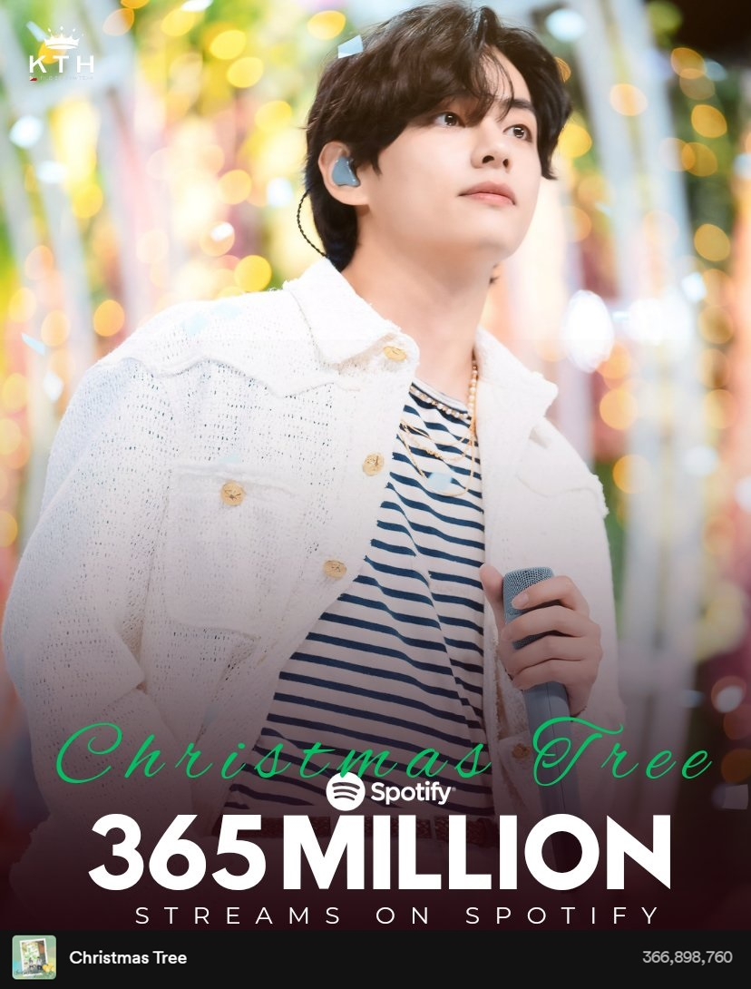 방탄소년단(BTS) 뷔의 'Christmas Tree'(크리스마스 트리)가 스포티파이 최다 스트리밍 K-OST에 오르며 믿고 듣는 'OST 킹' 명성을 빛냈다.