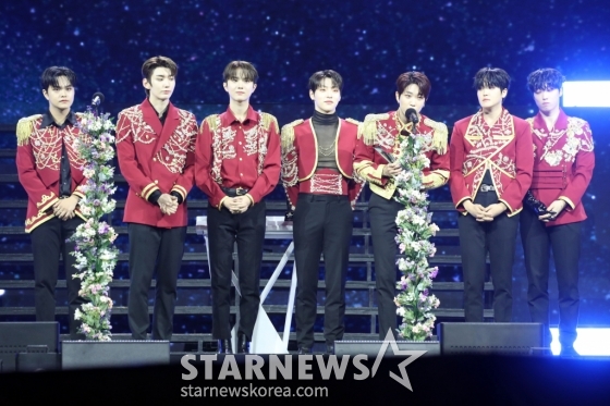 그룹 킹덤이 14일 필리핀 아레나에서 열린 '2023 아시아 아티스트 어워즈 인 필리핀'(2023 Asia Artist Awards IN THE PHILIPPINES, 이하 '2023 AAA')에서 'AAA 뉴웨이브 상'을 수상하고 소감을 말하고 있다.