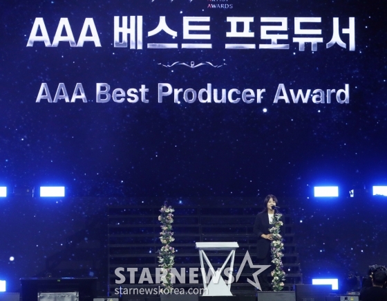 서현주 스타쉡 프로듀서가 14일 필리핀 아레나에서 열린 '2023 아시아 아티스트 어워즈 인 필리핀'(2023 Asia Artist Awards IN THE PHILIPPINES, 이하 '2023 AAA')에서 AAA 베스트 프로듀서 상을 수상한 뒤 소감을 말하고 있다.