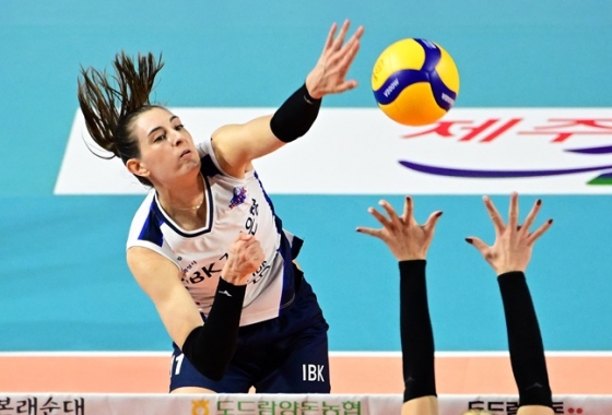 IBK기업은행이 먼저 1점을 따냈다. 아베크롬비가 상대 블로킹 벽 넘어 가볍게 넘기며 득점에 성공했다.