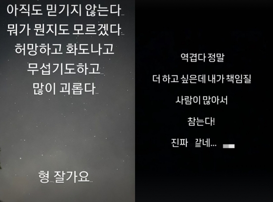 오대환은 30일 자신의 SNS를 통해 "아직도 믿기지 않는다. 뭐가 뭔지도 모르겠다. 허망하고 화도 나고 무섭기도 하고 아주 괴롭다. 형 잘 가요"라고 고인을 추모했다.