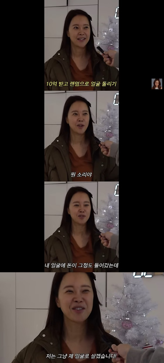 이어 '본인 외모로 살기 vs 10억원 받고 랜덤으로 얼굴 돌리기'라는 주제가 나오자 "뭔 소리야. 내 얼굴에 그 정도 들어갔는데. 저는 그냥 제 얼굴로 살겠다"고 말했다. 이를 들은 제작진이 "10억원은 금방 버니까?"라고 묻자 백지영은 "네"라고 밝혔다.