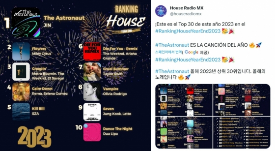 방탄소년단(BTS) 진의 '디 애스트로넛'(The Astronaut)이 멕시코 인기 라디오에서 '2023 올해의 노래' 1위로 선정되며 인기를 빛냈다.