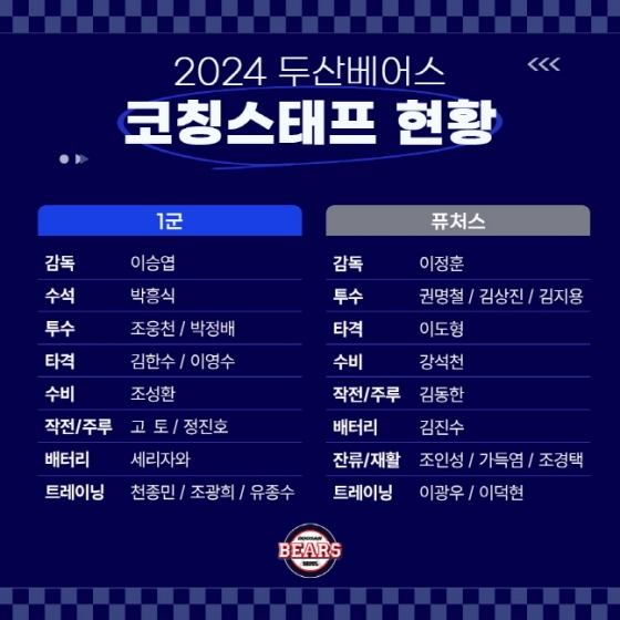 두산 베어스는 5일 2024시즌 코칭스태프 보직을 확정, 발표했다.