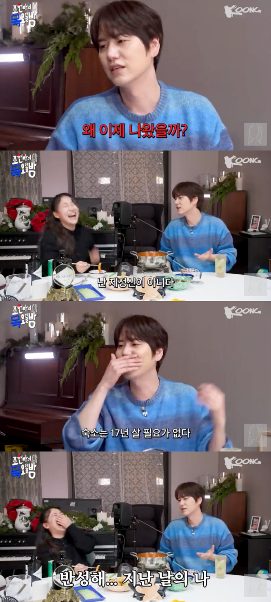 규현은 그러나 현재는 "나와서 4개월쯤 살고 있는데 왜 이제 나왔을까" 싶다며 "난 제정신이 아니다. 숙소는 17년 살 필요가 없다"고 말해 웃음을 자아냈다.