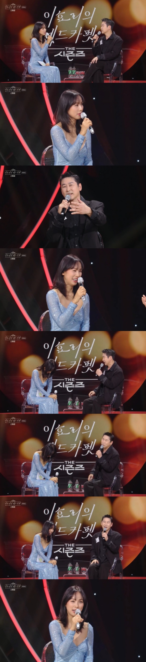 신동엽은 "그 부분에 대해서 뭐라고 사람들이 걱정을 많이 했는데, 전혀 문제가 없었다"라며 "이효리 씨가 정말 쿨한 게, 낮에 기자 분들 앞에서 이효리 씨가 본인도 '레드카펫'을 위해서라면 얼마든지, 예전에 만났던 분들을 모신다고 하더라"라고 역공해 웃음을 자아냈다.
