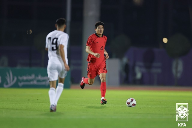 한국도 반격에 나섰다. 전반 19분 볼을 뺏긴 뒤에도 설영우가 상대 페널티박스 안에서 집중력 넘치는 수비로 공격권을 가져왔다. 이어 크로스를 올렸고 정우영이 헤더 슈팅을 날렸으나 골키퍼 정면으로 향했다. 전반 23분 이기제의 날카로운 크로스를 받아 오현규가 오른발 논스톱 슈팅을 시도했다. 하지만 이번에도 슈팅은 골키퍼 정면으로 향했다.