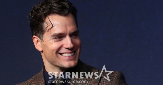 할리우드 배우 헨리 카빌이 18일 오전 서울 종로구 포시즌스호텔 서울에서 진행된 할리우드 영화 '아가일' 내한 기자회견에서 미소를 짓고 있다.