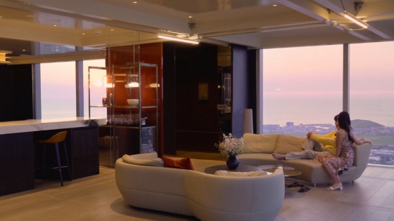 프랑스 최고급 명품 가구(로쉐보보아)와 이탈리아 천연 대리석의 대형 욕조, 스팀샤워 및 사우나를 갖춘 욕실, 아일랜드 바 테이블과 개별 다이닝 공간까지 감각적인 인테리어를 자랑한다. 침대 역시 4,000만원 상당의 스웨덴 명품 덕시아나 브랜드로 맞춤형 700수 프리미엄 침구류만을 사용해 럭셔리의 진수를 경험할 수 있다.