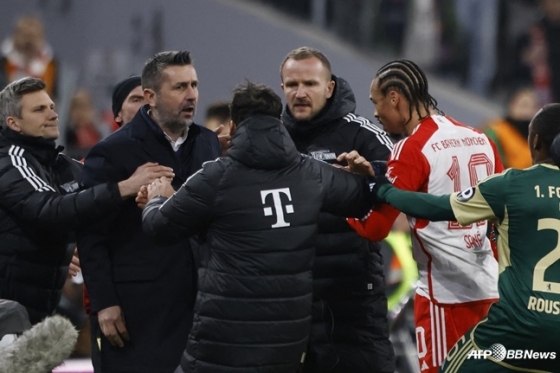 뮌헨이 1-0으로 앞서던 후반 중반에는 양 팀이 신경전을 벌이기도 했다. 스로인 상황에서 사네와 네냐드 비엘리샤 베를린 감독이 충돌했다. 이 과정에서 비엘리샤 감독은 레드카드를 받았다. 사네의 얼굴을 손으로 미는 모습이 포착됐다.