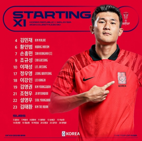 [스포탈코리아] 주대은 기자= 말레이시아전을 앞두고 대한민국 선발 명단이 공개됐다.