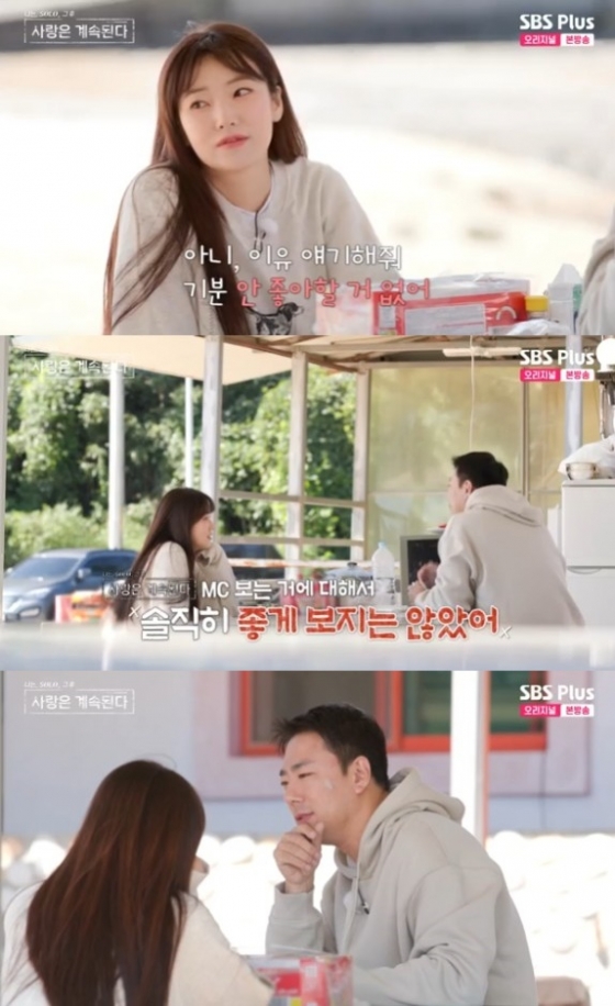 이날 방송에서 9기 옥순과 남자 4호는 솔로민박 앞에서 이야기를 나눴다. 그러던 중 남자 4호는 첫인상 선택으로 9기 옥순을 뽑았다고 고백했다. 이어 그는 "솔직히 '나솔사계'에서 MC 보는 것 보고 좋게 보진 않았다"라고 말했다.