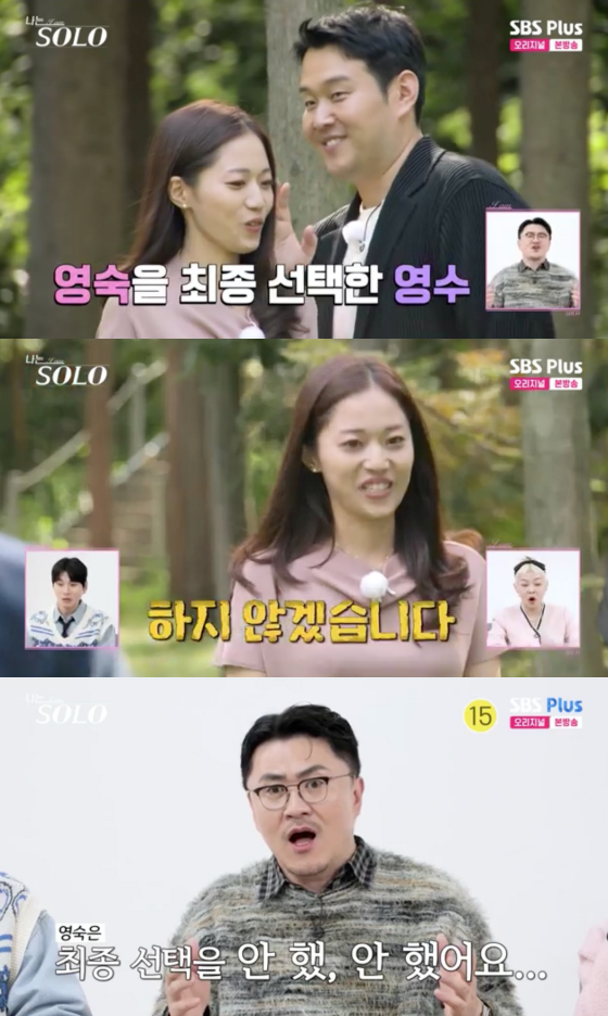 '나는 솔로' 18기 영수와 영숙이 최종 선택에서 엇갈리고 말았다.