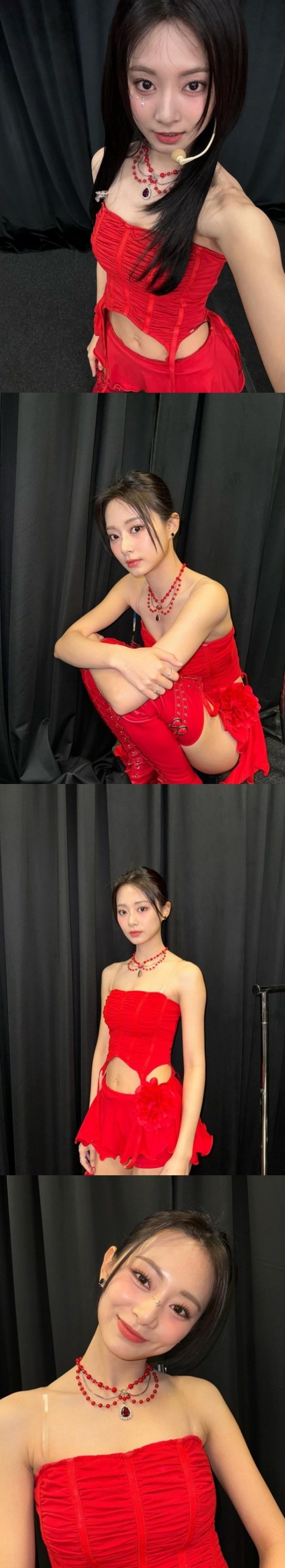 그룹 트와이스 쯔위가 과감한 레드 투피스 의상을 입고 섹시 스타 느낌을 물씬 풍겨 팬들의 마음을 설레게 했다.
