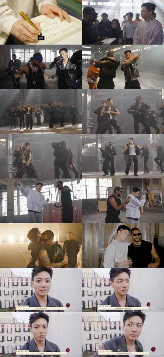 정국과 어셔는 퍼포먼스 비디오 촬영을 성공적으로 마친 후 다정한 포즈로 기념 사진을 찍으며 추억을 남겼다.