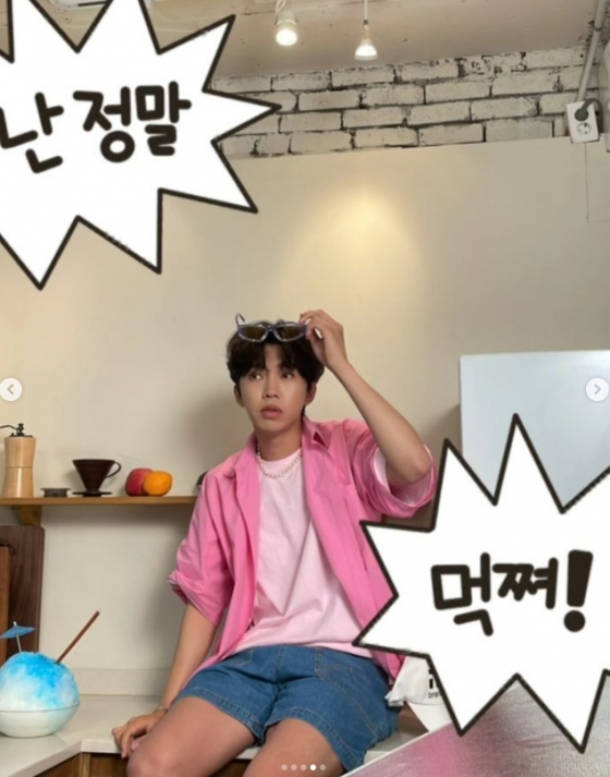 또 다른 사진에서 임영웅은 핑크 셔츠에 청 반바지를 입고 개구진 포즈를 선보이며 친근한 매력을 과시했다.