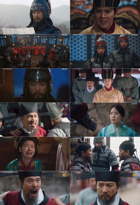 이날 방송에서는 현종(김동준 분)이 내부 반란을 막기 위해 김훈(류성현 분)과 최질(주석태 분)에게 굴복했다. 반란에 성공한 최질은 나날이 기고만장해졌고, 급기야 조정기구 개편까지 요구해 분노를 유발했다.
