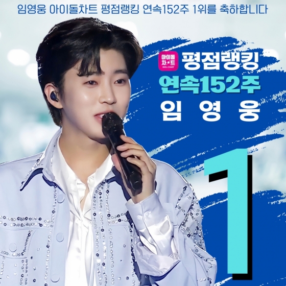 이로써 임영웅은 아이돌차트 평점랭킹에서 152주 연속 1위에 오르게 됐다.