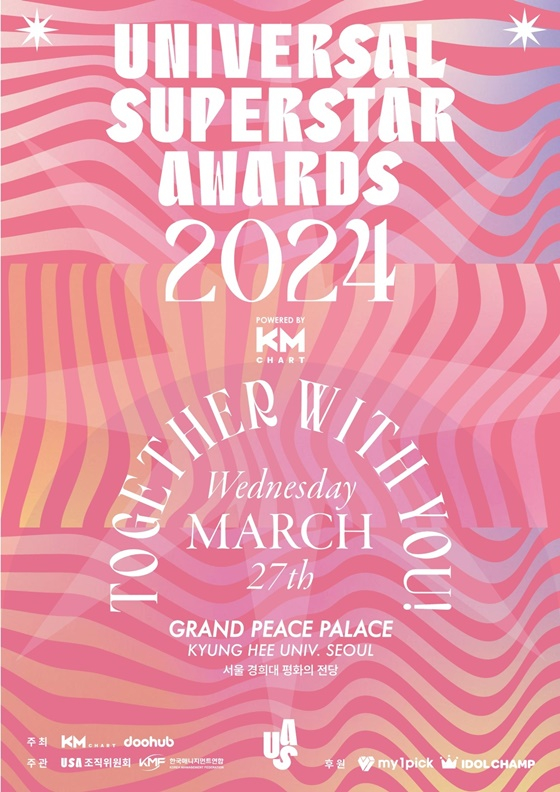 글로벌 스탠더드 K팝 차트 KM차트와 doohub가 주최하고 사단법인 한국매니지먼트연합이 주관하는 '2024 유니버설 슈퍼스타 어워즈(Universal Superstar Awards, 이하 '2024 USA')'의 본선 투표가 23일부터 오는 3월 14일까지 K팝 전문 애플리케이션 '마이원픽', '아이돌챔프'를 통해 진행된다.