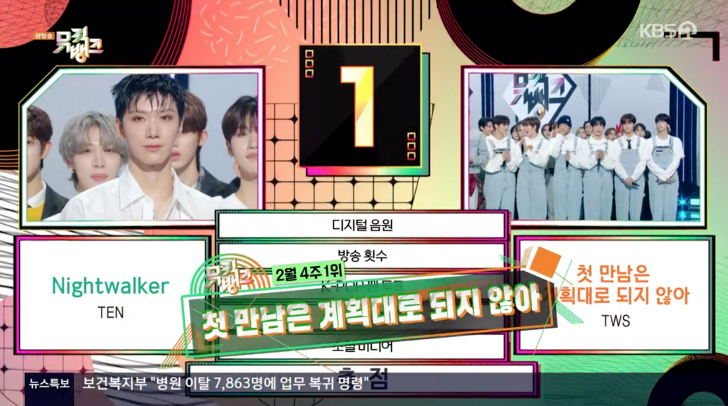 투어스는 23일 방송된 KBS 2TV '뮤직뱅크' K-차트 1위에 등극했다.
