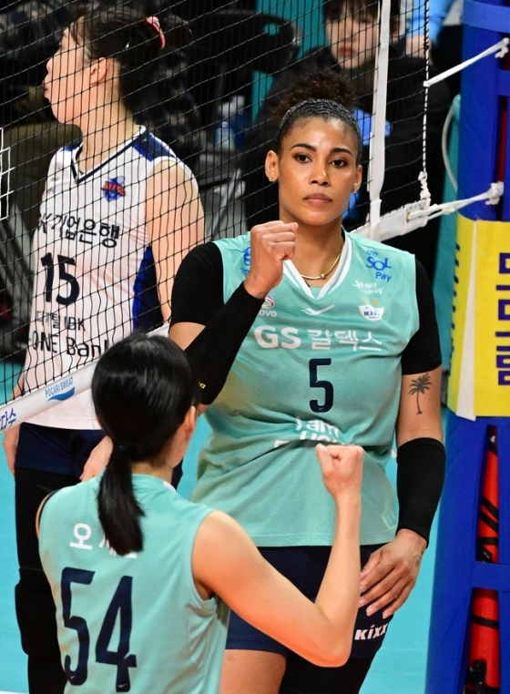 GS칼텍스는 25일 서울시 중구 장충체육관에서 열린 도드람 2023~2024 V리그 여자부 홈경기에서 화성 IBK기업은행을 세트 스코어 3-0(25-23, 25-19, 25-22)으로 꺾었다.
