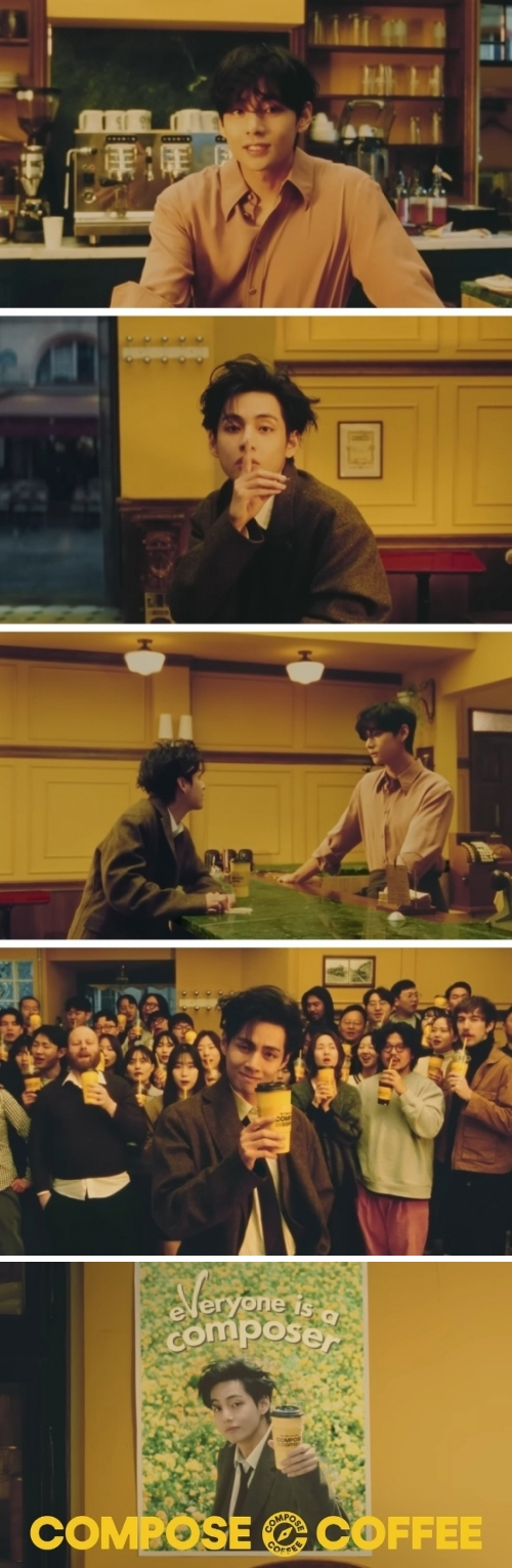 뷔의 이름과 컴포즈커피 브랜드를 유기적으로 연계한 캠페인 "V is a composer, eVeryone is a composer"이라는 메시지에는 뷔가 작곡을 하듯 가장 맛있는 커피를 찾아준다는 의미가 담겼다.