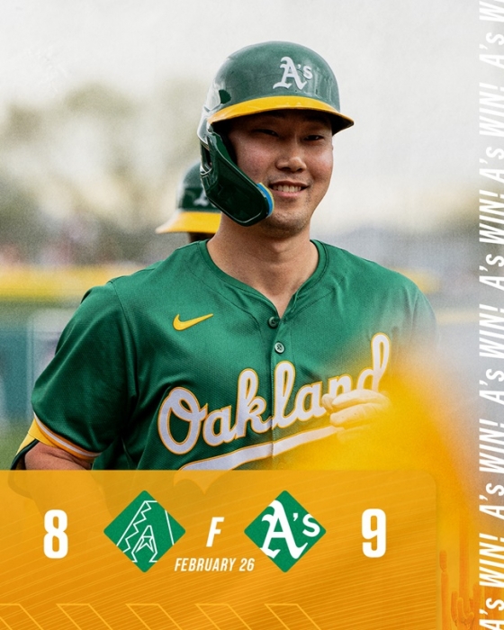 박효준은 27일(한국시간) 오클랜드의 스프링캠프 홈구장인 미국 애리조나주 메사의 호호캄 스타디움에서 열린 2024 메이저리그 시범경기 애리조나 다이아몬드백스와 경기에서 6회 초 대수비로 출전해 2타석을 소화, 2타수 1안타(1홈런) 3타점 1득점을 기록했다.