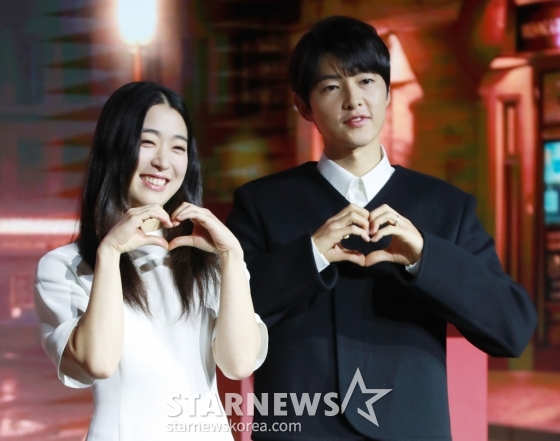 두 사람의 호흡은 어땠을까. 송중기는 "성은 씨는 작품을 통해 만난 건 처음이고 작품 외적으로는 영화 '시동' 때였다. 당시 '아스달 연대기' 촬영 중이었고 옆 세트장에서 촬영 중이었다. 그때 머리 길어서 안 가려고 했는데 동석이 형도 이상한 가발을 쓰고 있었다. 그래서 이상한 가발 쓴 둘이 밥을 먹었다"라며 "당시 성은 씨는 말수도 없고 쑥스러워했는데 영화를 보고 놀랐다. 이후 '괴물'을 봤는데 놀라웠다. 현장에서 성은 씨 에너지는 유니크하다. 난 마리 역이 한국 영화에서 자랑스러워해도 될만한 캐릭터 같다고 생각하는데 여기에 딱 맞았다"라고 칭찬했다.